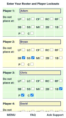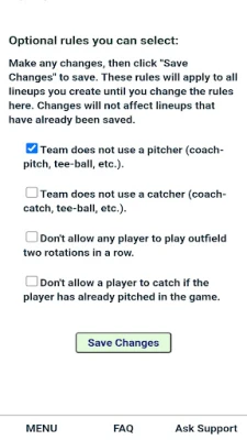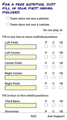A még átfogóbb csapatmenedzsment és rugalmasság érdekében érdemes frissíteni. A prémium funkciókkal hozzáadhat ütésrendet bármely összeállításhoz, és bővítheti a kizárási lehetőségeket, így a játékosokat a dobó, elkapó, első bázis posztokon kívül bármely más posztról, vagy akár az összes belső pályás pozícióból is kizárhatja. Szabja testre a rotációt inningenként (1, 2 vagy 3 inningenként a mezőnyjátékosoknak és a dobóknak külön-külön), szerkesszen bármely inninget, és indítson új felállást egy elmentett listából. A fair rotáció garantált: egy játékos sem marad ugyanazon a poszton két egymást követő rotációban, és nem ismétli meg ugyanazt a pozíciót később, hacsak nincs más megfelelő játékos. Ezenfelül speciális szabályokat is beállíthat, például megakadályozhatja, hogy egy játékos kétszer egymás után külső pályán játsszon, vagy hogy dobás után azonnal elkapó legyen.
