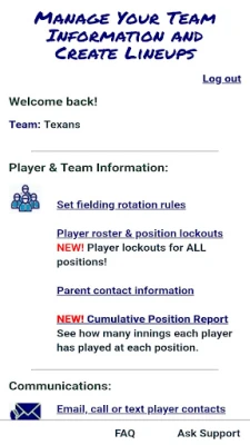 Az alkalmazás nem csupán az összeállításokról szól, hanem a csapatadminisztrációt is leegyszerűsíti. Mentse el akár 20 játékos névsorát egyszer, majd használja azt egész szezonban, hozzáférve bárhonnan böngészőből vagy mobilalkalmazásból. Tartsa a kapcsolatot a csapattal azonnal: tárolja a szülők telefonszámait és e-mail címeit, küldjön üzenetet az egész csapatnak egyetlen kattintással, vagy e-mailt automatikusan csatolva bármely elmentett összeállítást. Egyetlen gombnyomással felhívhatja vagy üzenetet küldhet bármely szülőnek, és akár öt segédedzővel is megoszthatja a fiókját. Mindez valós emberektől származó támogatással párosul, nem robotoktól. A fizetős tagság mindössze $9.99 csapatonként, ami korlátlan összeállítást biztosít december végéig (az augusztus-december között vásárolt tagságok a következő év áprilisáig érvényesek).