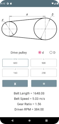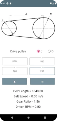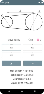 Az alkalmazás magja a könnyű használhatóságban rejlik. Csupán a meghajtó szíjtárcsa fordulatszámát (RPM) kell megadnia, és pillanatok alatt megkapja a meghajtott tárcsa precíz sebességét, valamint a szíj optimális sebességét. Ezek az adatok elengedhetetlenek a gépek hatékony működéséhez és a komponensek élettartamának maximalizálásához. Ráadásul, az áttételi arány meghatározása is pillanatok alatt elvégezhető, ami nélkülözhetetlen a mechanikai rendszerek tervezésénél és optimalizálásánál.