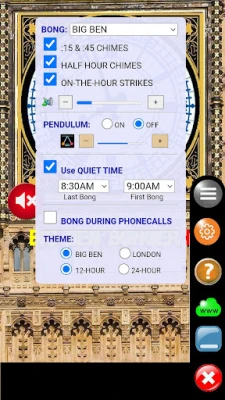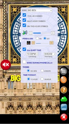 A **Big Ben Bonger PLUS** a részletekbe menő testreszabhatóságot kínálja, hogy tökéletesen illeszkedjen életmódjához. Könnyedén beállíthatja a „Csendes időszakot", amikor az alkalmazás néma marad, így biztosítva a zavartalan pihenést vagy munkát. Válasszon az analóg és digitális órafelületek között, váltson normál és sötét képernyőmód között, vagy kapcsolja be az opcionális ingahangot a még autentikusabb élményért. Még egy fő némító gomb is rendelkezésre áll az azonnali csendért. Ráadásul a **Big Ben Bonger PLUS** akkor is megbízhatóan működik a háttérben, amikor készülékét más célra használja, sosem akadályozva a napi tevékenységeit.