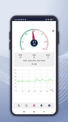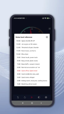 A Sound Meter nem csupán számokat mutat; a mért értékeket vizuálisan, könnyen értelmezhető grafikonon is megjeleníti, lehetővé téve a zajszint változásainak dinamikus követését. Annak érdekében, hogy teljes képet kapjon, az alkalmazás folyamatosan rögzíti az aktuális, minimális, átlagos és maximális decibel értékeket, melyek bármikor szüneteltethetők, folytathatók vagy alaphelyzetbe állíthatók. Különösen hasznos a beépített zajreferencia-táblázat, amely segít felmérni, hogy az adott hangszint károsíthatja-e hallását, ezáltal proaktívan hozzájárul egészségének megőrzéséhez. Egyedi "fejjel lefelé" funkciója pedig lehetővé teszi, hogy a mikrofont a zajforrás felé irányítsa a még pontosabb mérés érdekében.