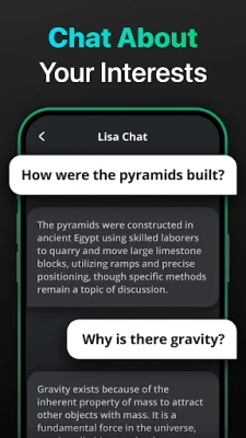 A Lisa Chat kiválóan alkalmas arra, hogy minden igényét kielégítse, miközben harmonikusan működik együtt kedvenc alkalmazásaival, azonnali AI-alapú megoldásokat és lenyűgöző beszélgetéseket kínálva. Legyen szó egy esszé csiszolásáról, egy blogbejegyzés megfogalmazásáról vagy egy szívből jövő levél megírásáról, a Lisa Chat fejlett képességei, melyek a saját GPT infrastruktúránkra támaszkodnak, professzionális és kiváló minőségű tartalmak létrehozásában nyújtanak segítséget. Emellett a Lisa Chat az ismeretek bővítésének kapuja is: fedezzen fel új témákat, mélyítse el tudását, és vegyen részt intellektuális eszmecserékben az alkalmazás hatalmas információs tárházára és erőteljes AI-vezérelt felismeréseire építve. Személyre szabott útmutatásával és támogatásával a Lisa Chat egy testreszabott chatbot élményt biztosít, amely valóban az Ön igényeihez igazodik.
