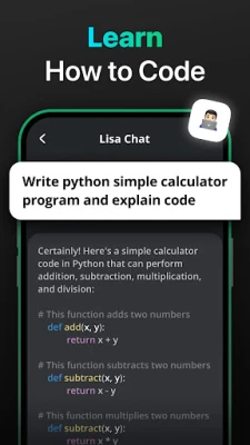 A Lisa Chat átfogó funkciókészlete arra hivatott, hogy hatékonyságát maximalizálja. Használja ki a szakértő írássegítő funkciót kutatási anyagoktól üzleti javaslatokig, vagy akár kreatív történetek, versek és esszék megalkotásához. Javítsa szövegei nyelvtani és helyesírási hibáit, vagy sűrítse hosszú dokumentumokat lényegre törő összefoglalókká, ami ideális forrásanyagokhoz. Programozási feladatokhoz kódíráshoz, hibakereséshez és optimalizáláshoz is nyújt támogatást. Segítségével bonyolult matematikai feladatokat oldhat meg lépésről lépésre, és inspirációt meríthet projektekhez, ötleteléshez, valamint professzionális önéletrajzokat és motivációs leveleket készíthet. Ne feledje, kérjük, kerülje a személyes adatok bevitelét, és vegye figyelembe, hogy a Lisa Chat nem vállal felelősséget az esetlegesen generált sértő vagy veszélyes tartalmakért. Élje át a mesterséges intelligencia által nyújtott lehetőségek jövőjét a Lisa Chat-tel, az Ön intelligens és megbízható társával egy produktívabb és ihletettebb élet felé.